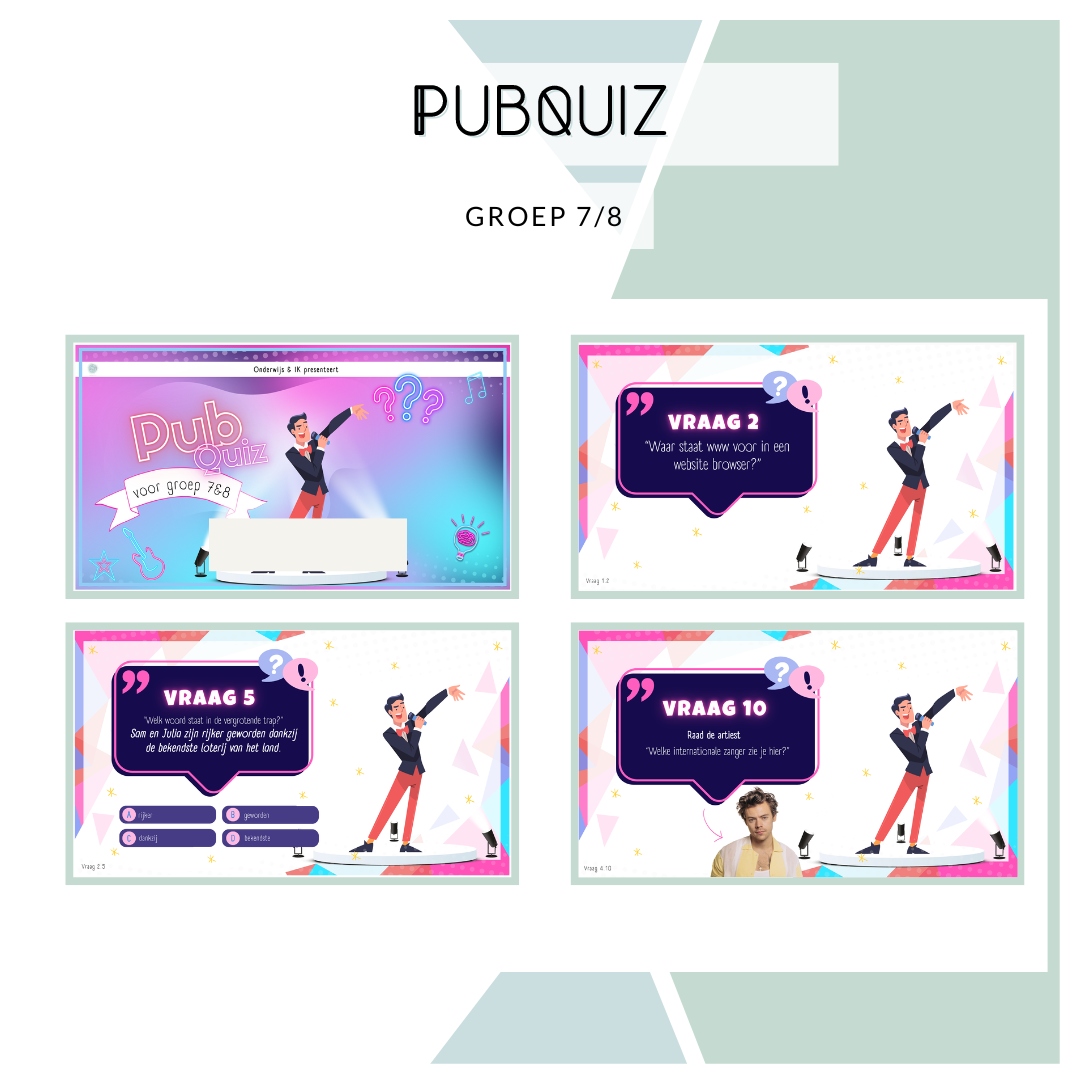 Isaak de Boer Een pubquiz spelen samen met de klas! De leerlingen vonden het fantastisch, maar ook erg leerzaam! De vragen in de pubquiz zijn afwisselend en sluiten erg goed aan bij het niveau van de groepen.
